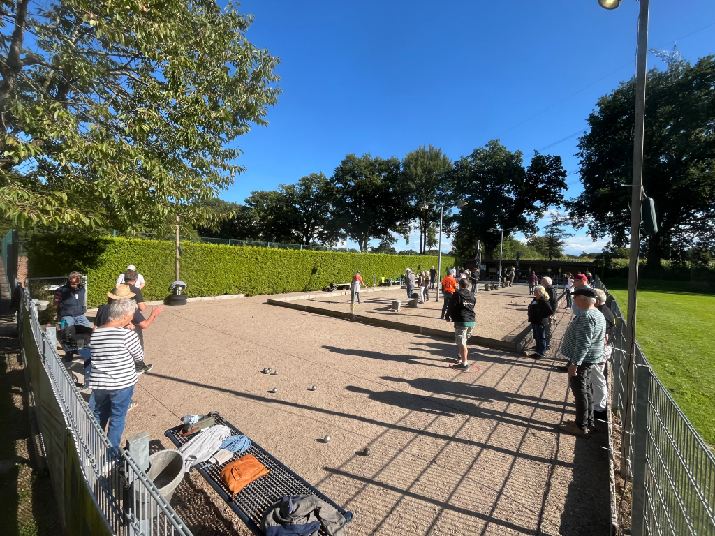 Wie so oft spielte das Wetter mit und die 72 Teilnehmer, die aus ganz Norddeutschland angereist waren, waren begeistert. Um 10 Uhr starteten sie mit den Spielen. Gespielt wurde im Modus Triplette (3:3), zwei Teams à drei Spieler:innen mit je zwei Kugeln.